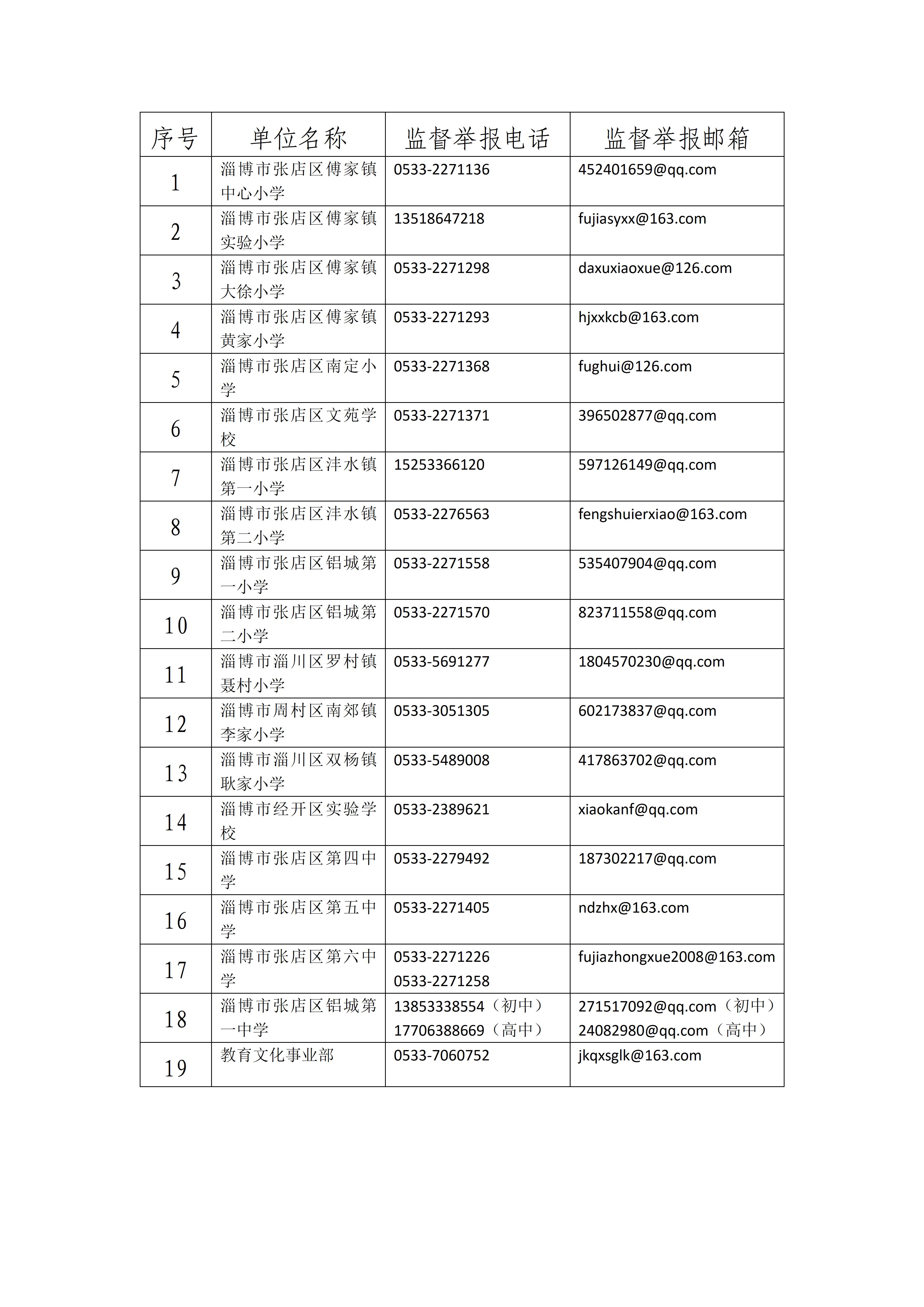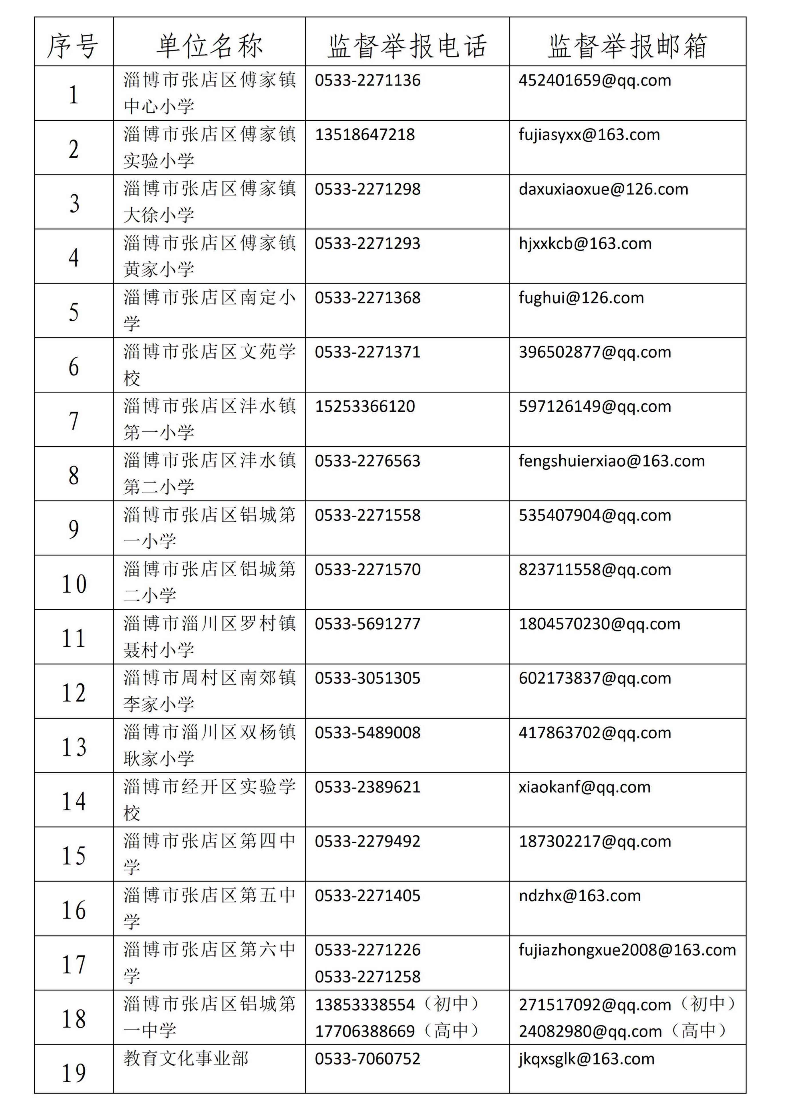 淄博经开区中小学寒假期间违规补课及作业负担过重监督举报电话和邮箱