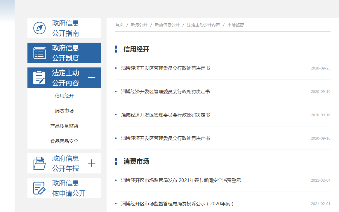 淄博经济开发区市场监督管理局信息公开指南