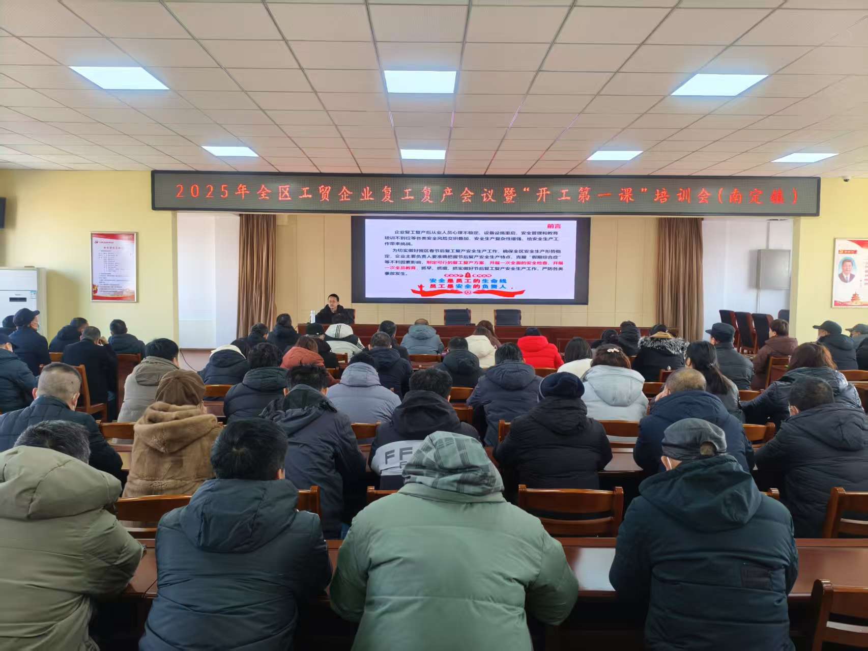 2025年2月6日至11日,区应急局基础科组织召开全区工贸企业复工复产培训会暨开工第一课集中培训(共5期),会议部署安排了近期安全生产相关工作,对复工复产工作进行部署,并聘请安全专家对工贸企业进行“开工第一课”培训。全区工贸企业主要负责人、安全管理人员650余人参加培训。